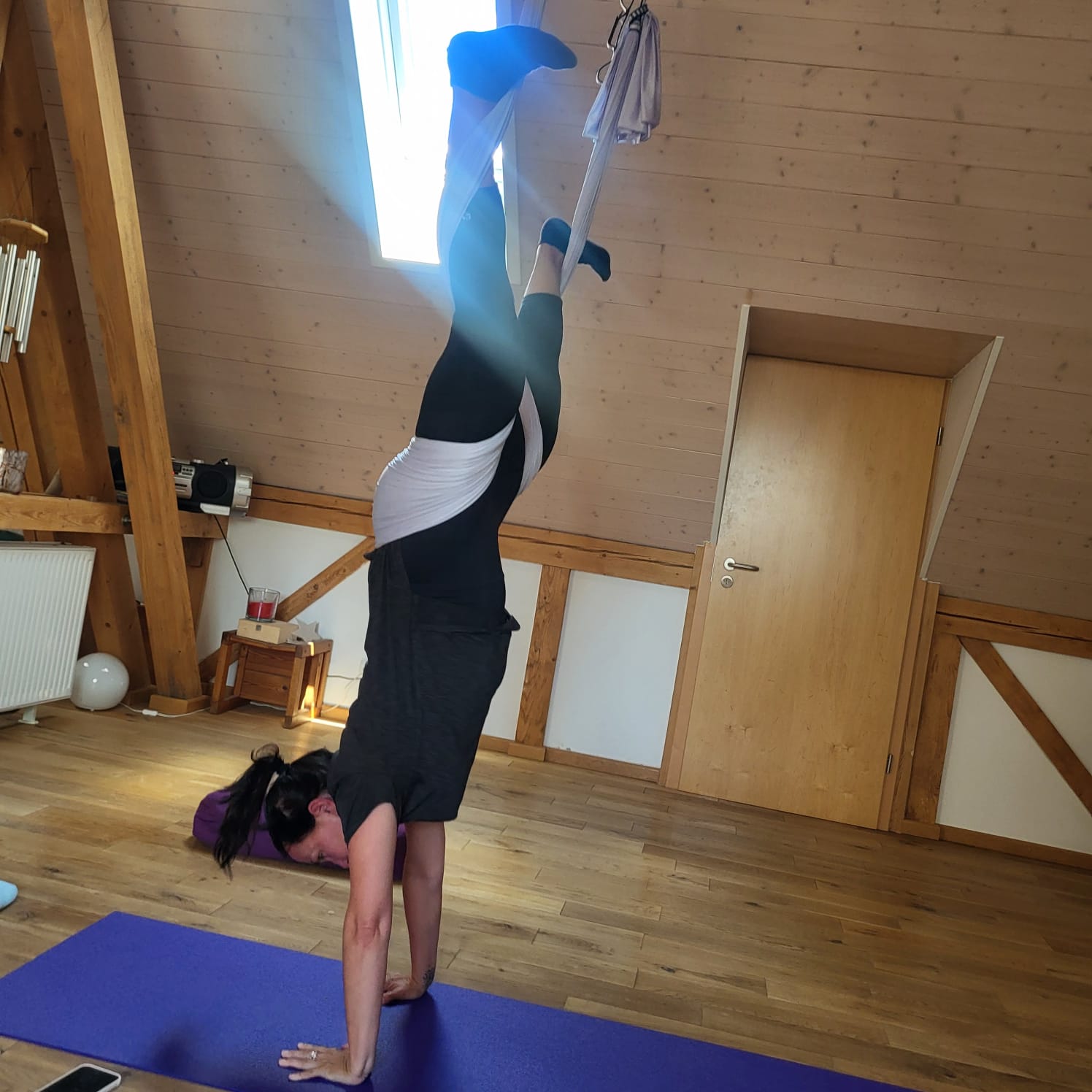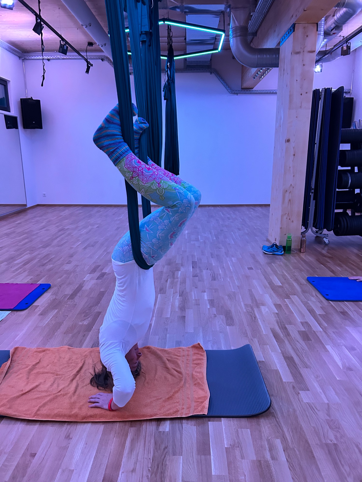 Lust, mal etwas neues auszuprobieren? Aerial Yoga (auch Luft-Yoga ist eine moderne Yoga-Form, bei der Übungen (Asanas) schwebend in einem von der Decke hängenden, weichen Tuch praktiziert werden. Schaue auf die Seite vom clever fit Landshut West oder sprich mich direkt an, um eine Schnupperstunde zu buchen!