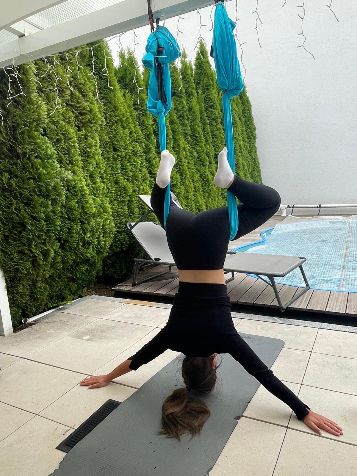 Yoga, meine Lieblingsbeschäftigung, begleitet mich jeden Tag, überall, zuhause, im Urlaub, im Studio, auf dem Wasser, im Aerial Tuch, in der Natur. Ich bin dankbar für jeden neuen Tag.