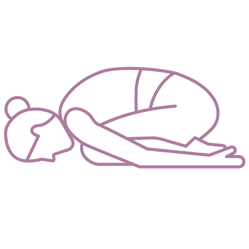 Die Kindhaltung entspannt die Wirbelsäule, den Nacken und dehnt die Rückenmuskulatur. In dieser Position werden die Knie gestützt und die Stirn leicht auf den Boden gelegt, während die Arme entspannt an den Seiten liegen.